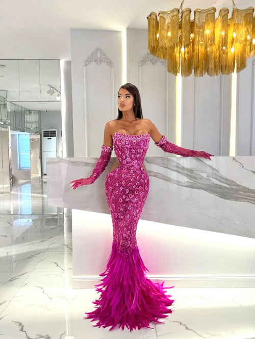 Women's French Strapless Bodycon Dress Lace Fur Trim Splicing Mini Dress For Birthday Dinner Club Night -